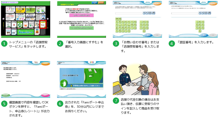店頭にある緑色の端末『Famiポート』からの操作のみで受け取ることができます。