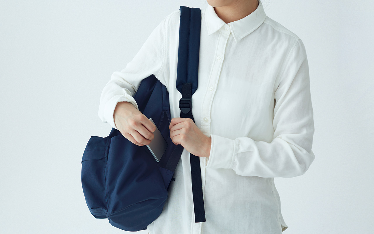リュックサックなら、無印良品の定番・サイドファスナーポケット付ポリエステルリュックサックが断然おすすめです。