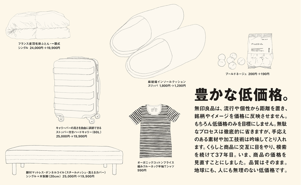 適正な品質と価格でより多くのユーザーに商品を提供することを目指して、1月から価格の見直しを続けていた無印良品。