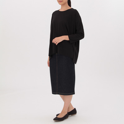 無印良品のモダールコットン素材のトップスはざぶざぶ洗えて丈夫なのにカジュアルすぎないところが好きで、結構持っています。