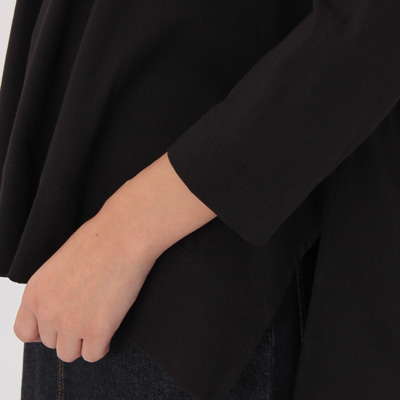 春先はこれで過ごします。丈感がちょうどいい、無印良品のモダールコットンドルマンスリーブ。
